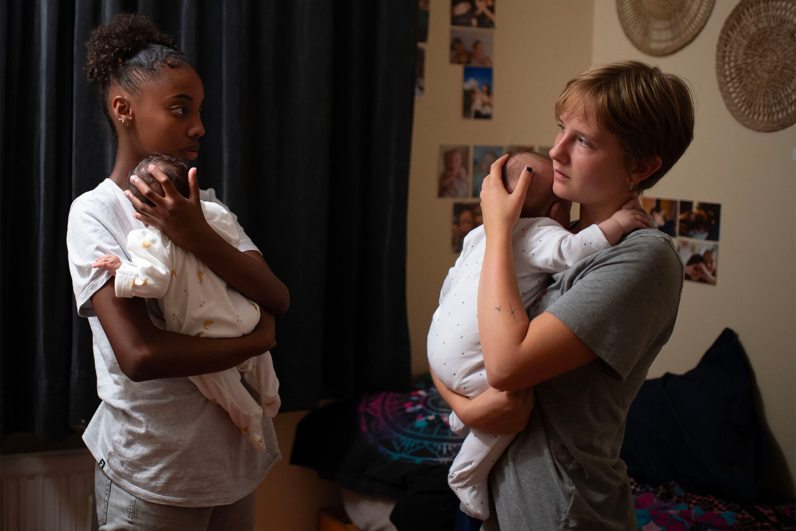 到着した場面写真では、共同生活を送る少女たちがそれぞれの赤ん坊を抱いて向き合う様子や、パートナーや母と一緒に我が子と過ごす姿、次なるステップを見据え、希望に満ちた笑顔でバイクに乗る姿などが切り取られています。